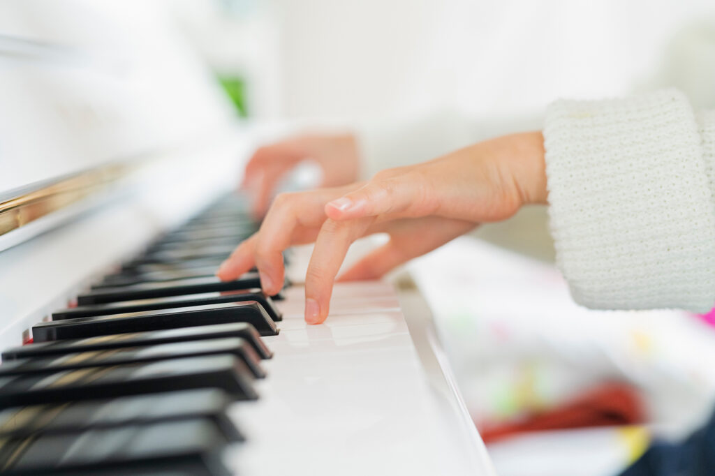 ピアノは楽譜を見ながら手指と足で音を奏で、その音色や音の重なり合いを耳で感じる楽器。