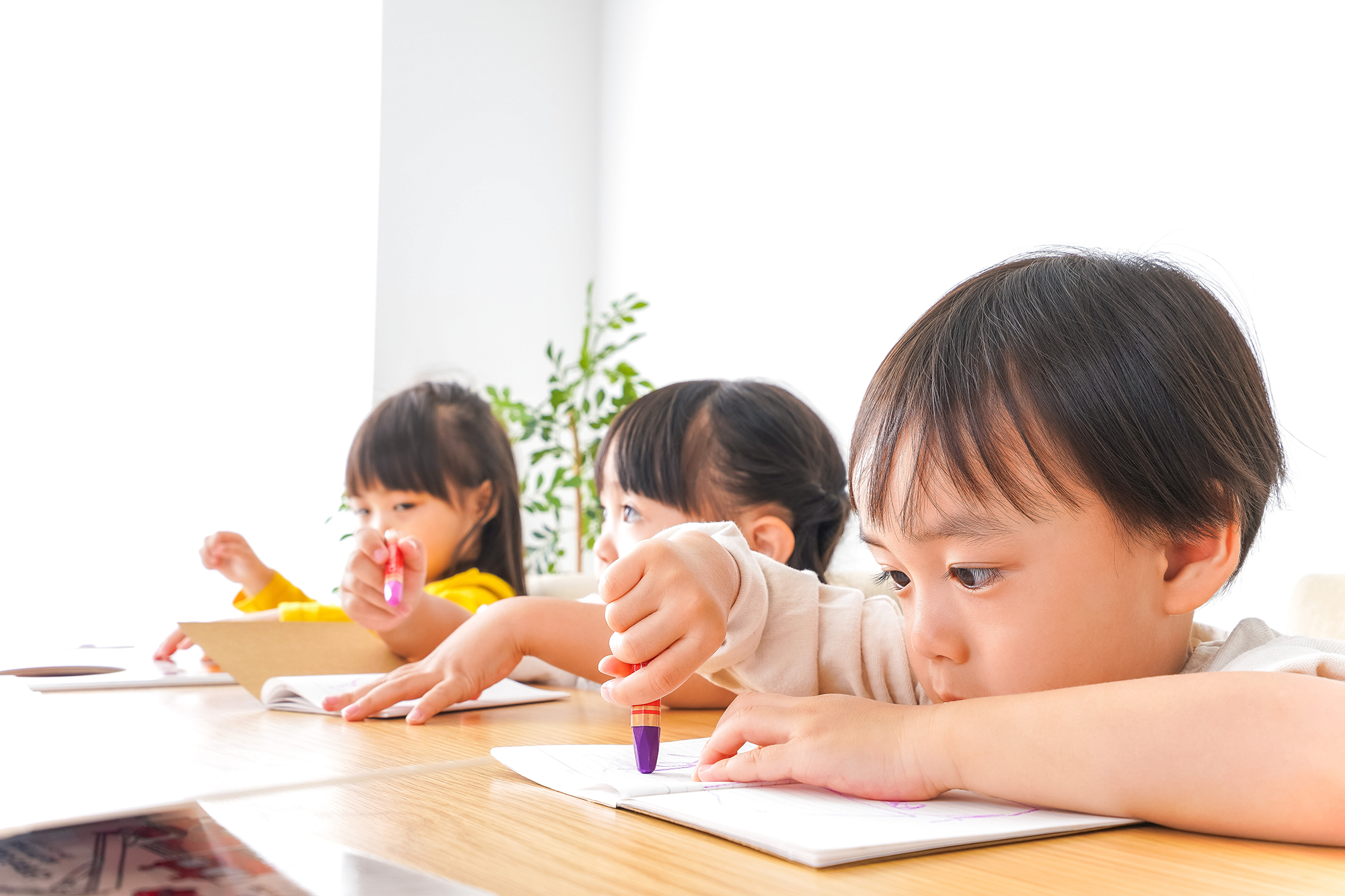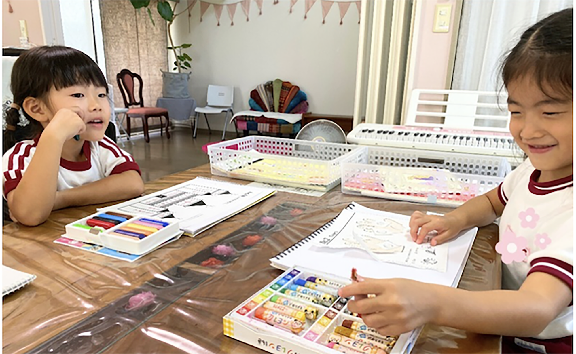 リトルノートの英語レッスンは、小学校入学に先立ち、座って学ぶ習慣を身につける良い機会となっています。